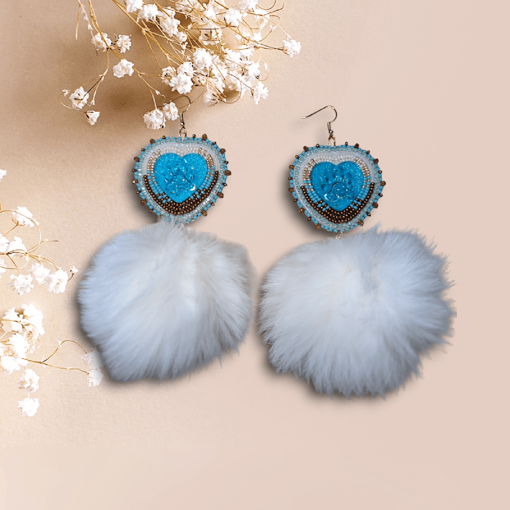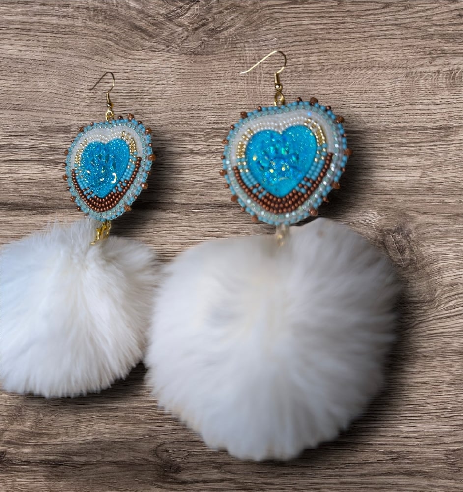 Gorgeous copper and teal colored bear paw earrings. Handcrafted with cream, white, teal and copper beads. Teal colored banding and sandstone bicones.