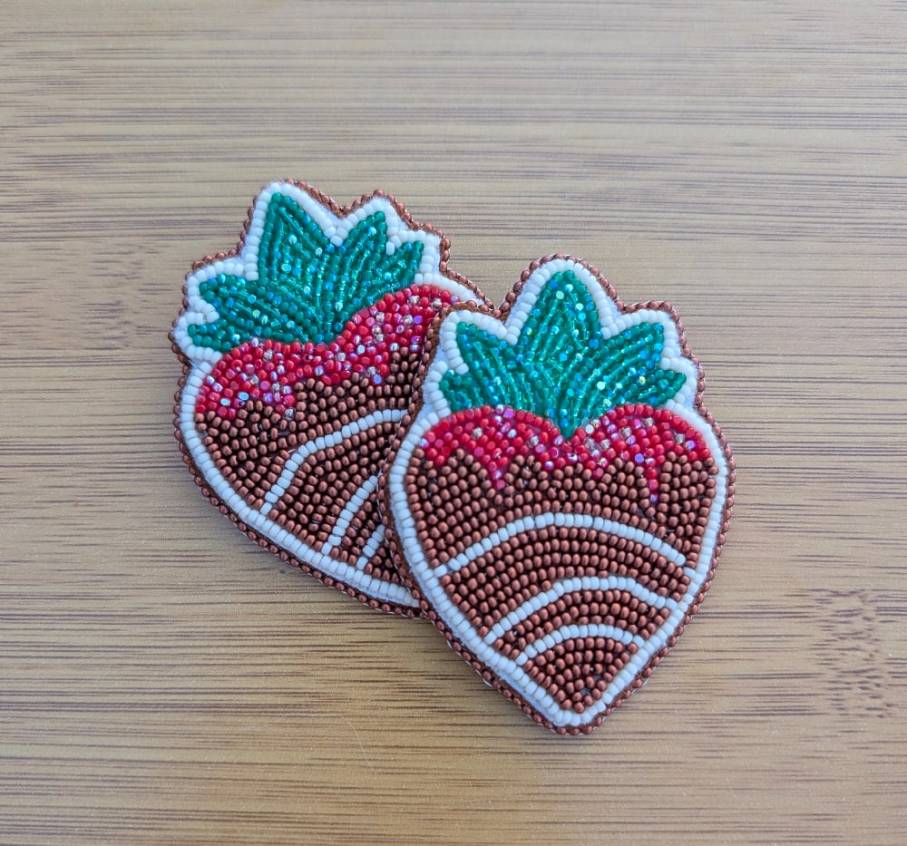 XL auntie earrings!! Made with sheen beads, backed with leather and on fingernail posts