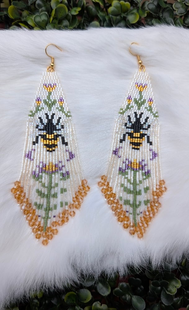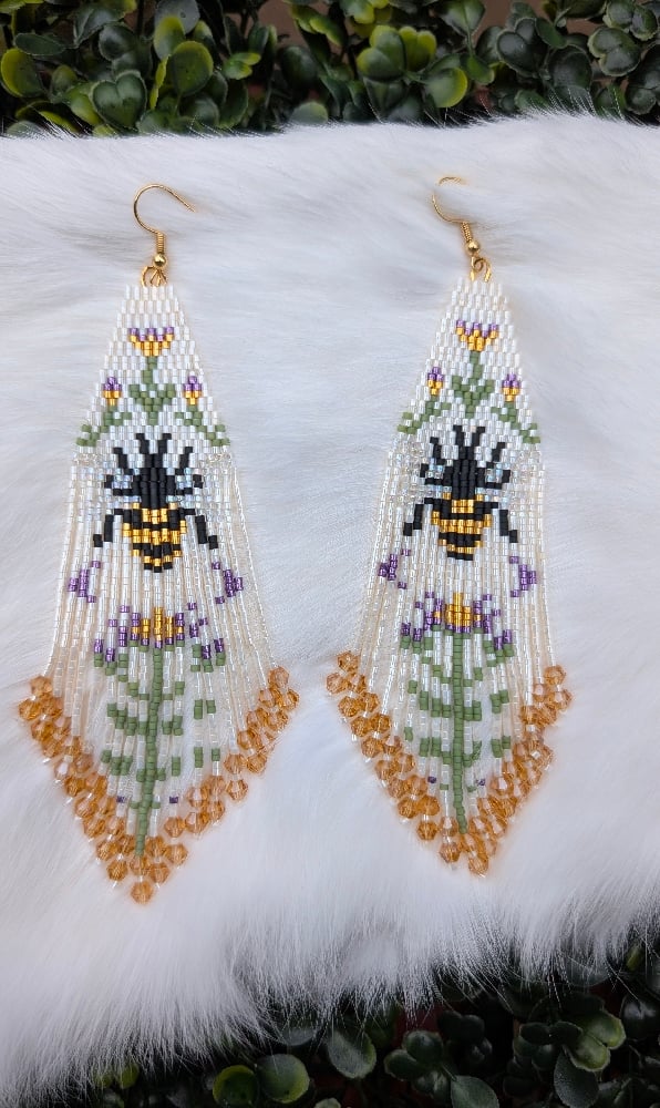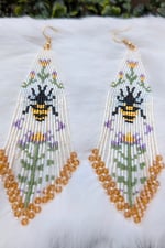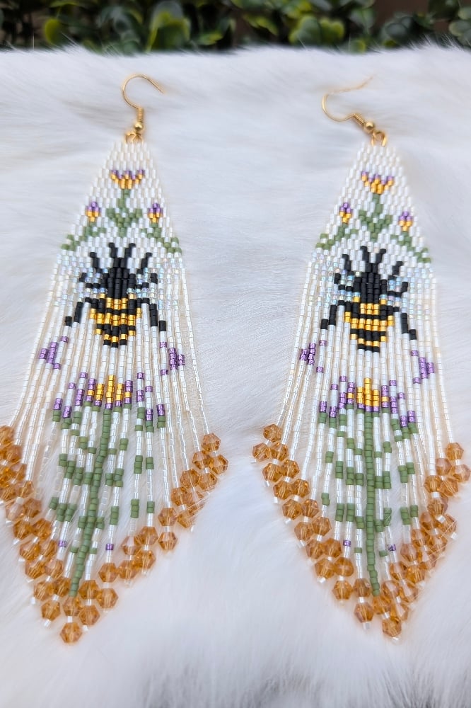 Elegant Golden bee fringe earrings made with cylin beads, miyukis and bicones.