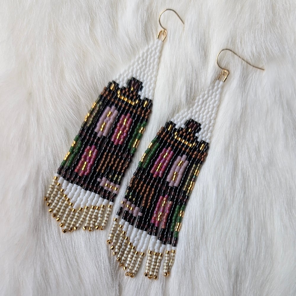 Classic beauty for the book lovers. Hints of 24k gold plated beads and finished on gold filled wire guards and hooks.